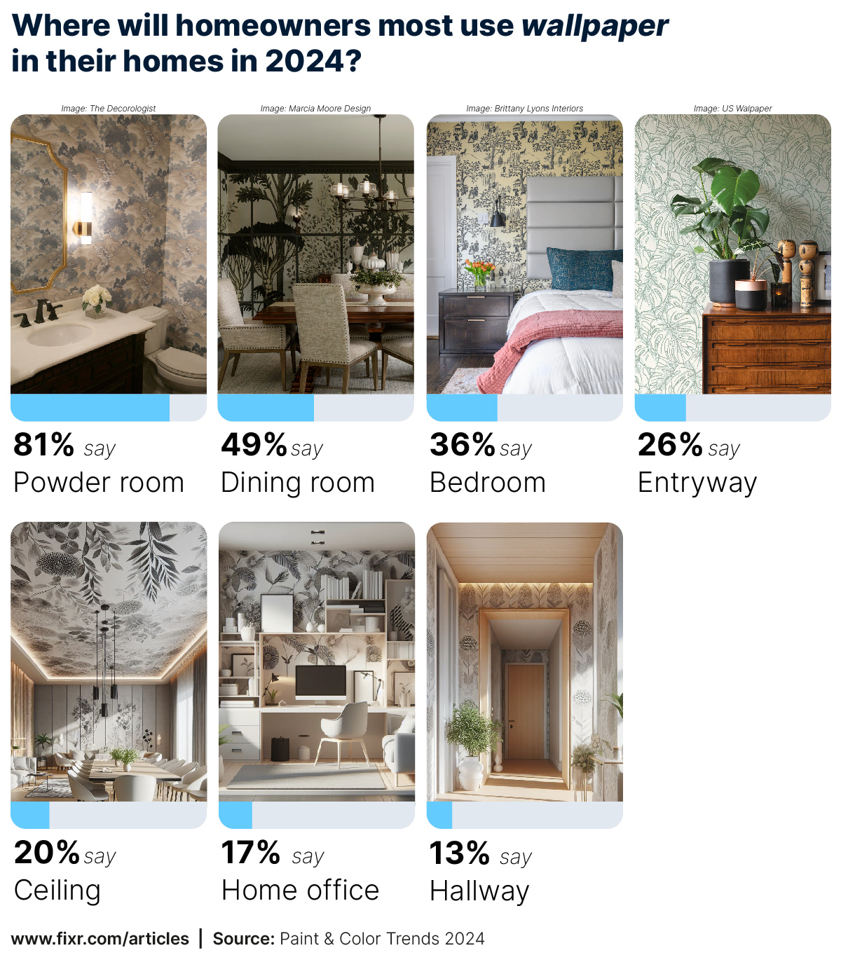 - 81% of pros agree that the powder room is where we see wallpaper used the most.