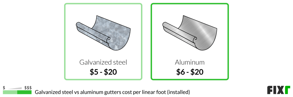 Aluminum is the most expensive at $6 to $20 per linear foot installed. Galvanized steel is slightly less at $5 to $20 per linear foot installed.
